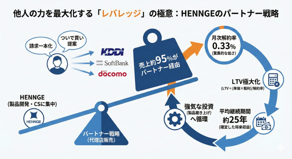 顧客からすれば、信頼している通信会社からの提案であり、支払いも一本化できるため、断る理由がほとんどありません。HENNGEは、大手キャリアが持つ「既存の顧客網」と「信頼」という、喉から手が出るほど欲しい資産を、手数料を払うことで借りているのです。